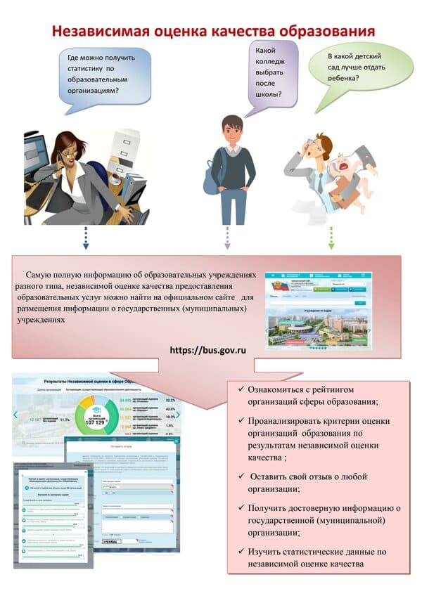 Принять участие в оценке качества условий оказания услуг образовательными организациями можно через официальный сайт bus.gov.ru или перейти по ссылке.